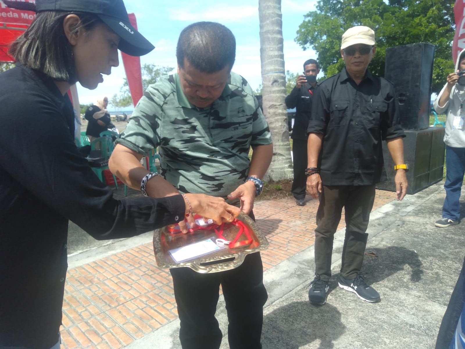 Sebelum mengakhiri sambutan, Wabup menyerahkan pemasangan ID card secara simbolis kepada beberapa perwakilan peserta, yakni Agung (Karang Taruna Salanjo Mavaro Petapa) dan Wulan (Risma Kreatif Nurul Gufran, Toboli Barat).