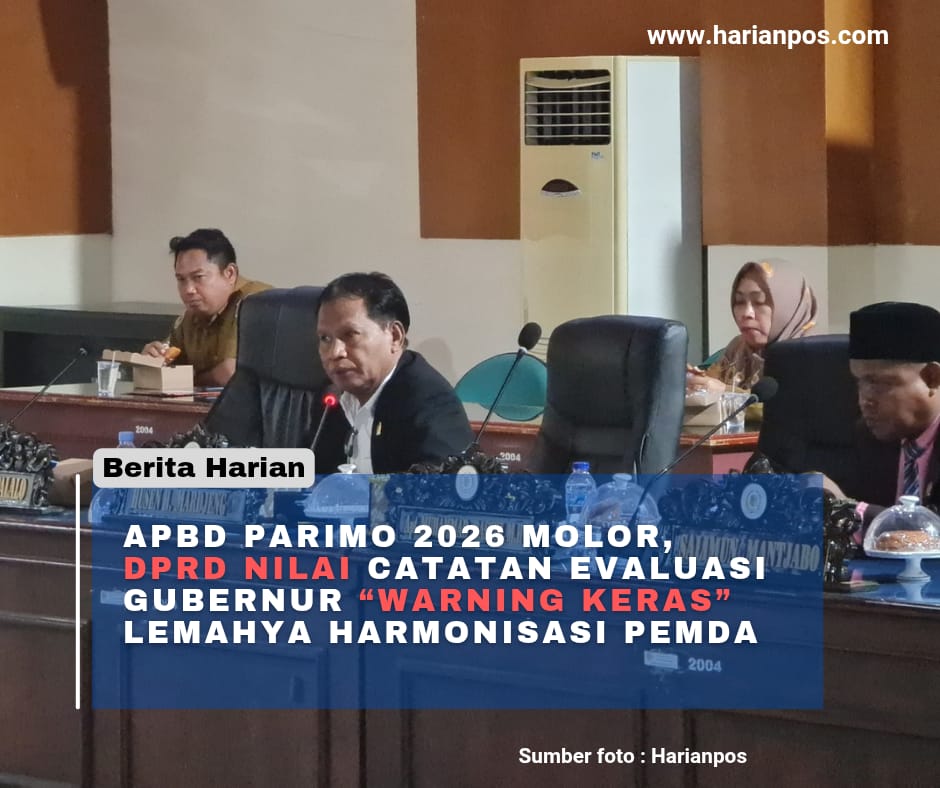 Parigi, Harianpos – Sejumlah catatan yang termuat dalam surat keputusan Gubernur Sulawesi Tengah terkait hasil evaluasi APBD Kabupaten Parigi Moutong (Parimo) Tahun Anggaran 2026 dinilai sebagai bentuk peringatan (warning) kepada Pemerintah Daerah Parimo atas keterlambatan pengesahan APBD.