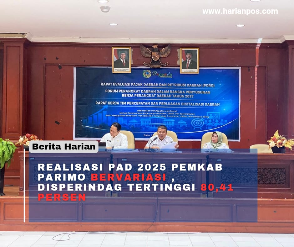Realisasi PAD 2025 Pemkab Parimo Bervariasi, Disperindag Tertinggi 80,41 Persen