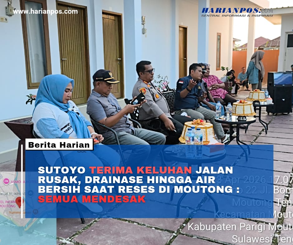 Parigi, Harianpos – Anggota DPRD Kabupaten Parigi Moutong, Sutoyo, S.Sos, menerima sejumlah keluhan masyarakat di Daerah Pemilihan (Dapil) IV saat melaksanakan kegiatan Reses dan Temu Konstituen Masa Persidangan II Tahun Sidang 2025/2026, Kamis (23/04/2026), di Desa Moutong Tengah.