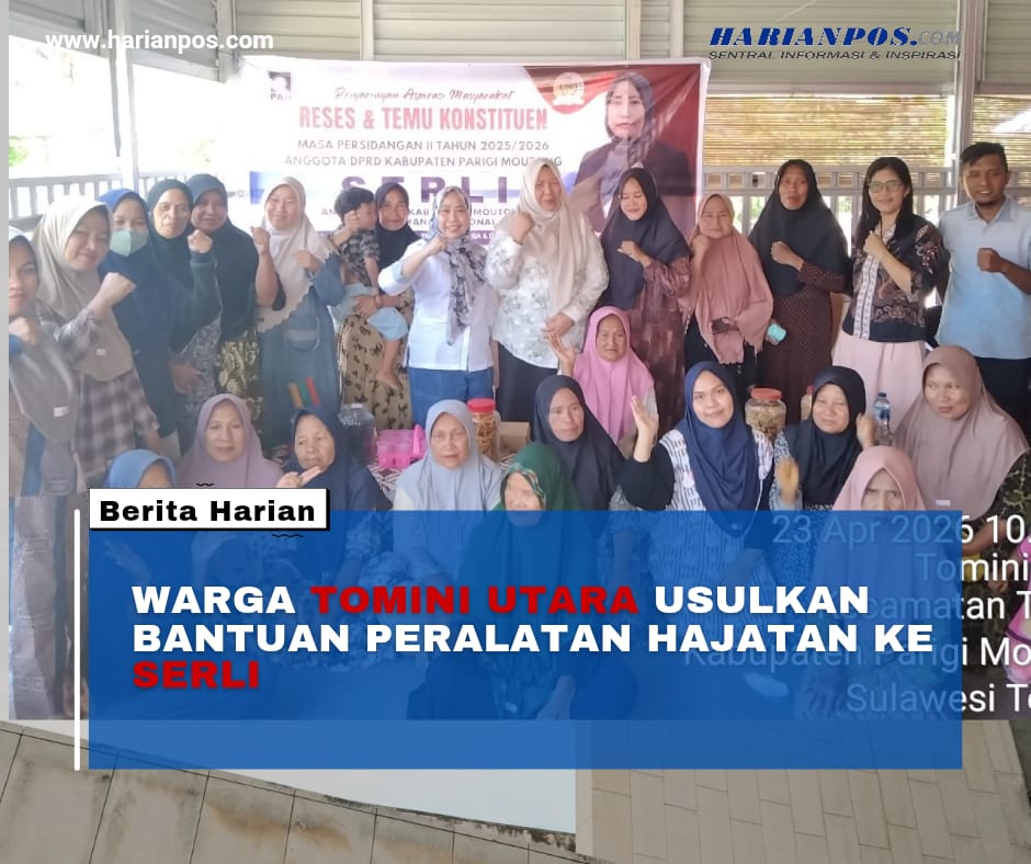 Parigi, Harianpos – Anggota DPRD Kabupaten Parigi Moutong dari Partai Amanat Nasional (PAN), Serli, menyerap aspirasi masyarakat terkait kebutuhan sarana pendukung kegiatan sosial saat melaksanakan reses Masa Persidangan Tahun 2026 di Desa Tomini Utara, Kecamatan Tomini, Kamis (23/04/2026).