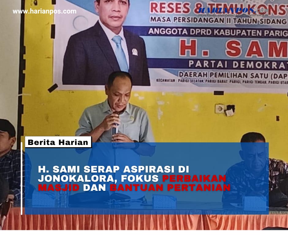 Parigi, Harianpos – Anggota DPRD Kabupaten Parigi Moutong dari Fraksi Partai Demokrat, H. Sami, melaksanakan agenda Reses Masa Persidangan Tahun 2026 di Balai Desa Jonokalora, Kecamatan Parigi Barat, Jumat (24/04/2026).